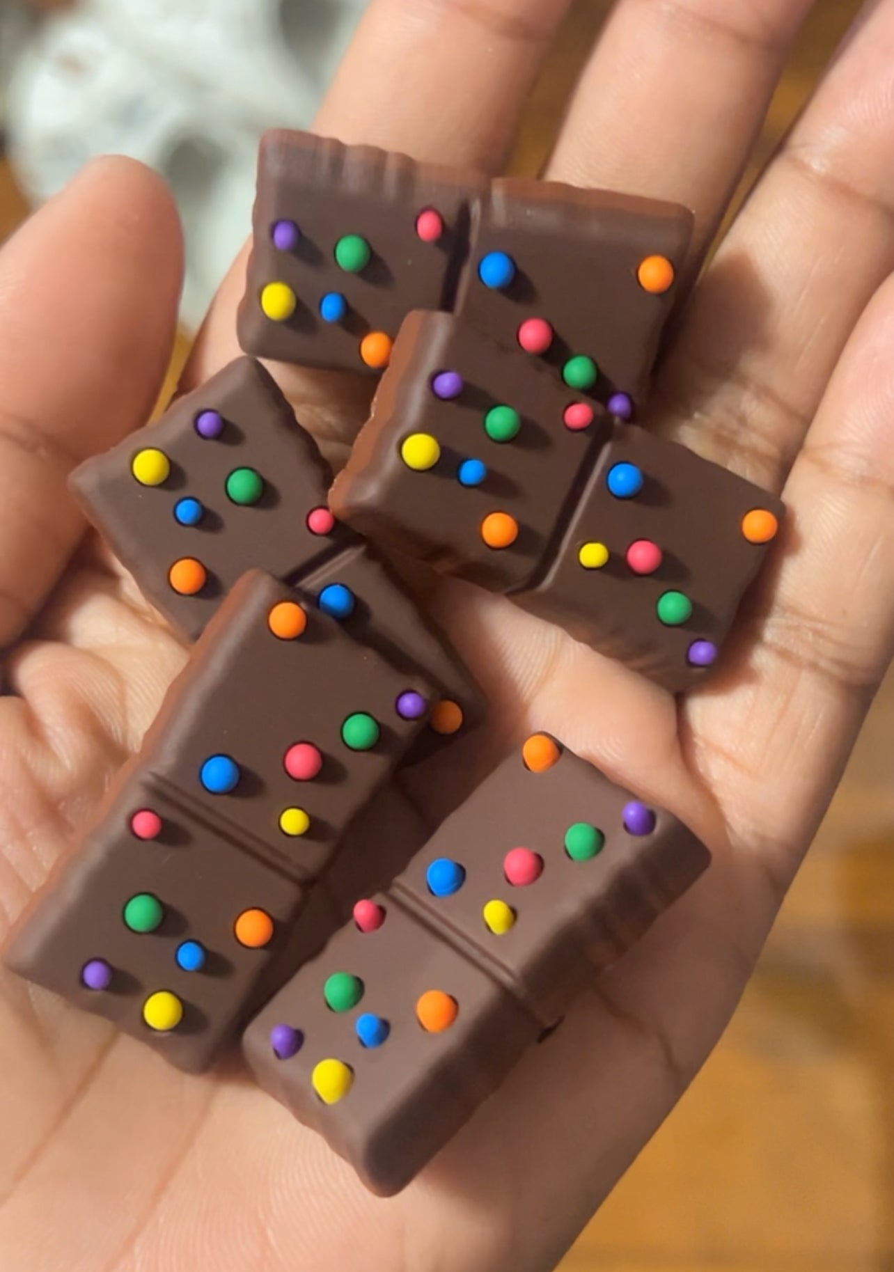 2 large, three dimensional cosmic brownie inspired charms compatible with clog shoes