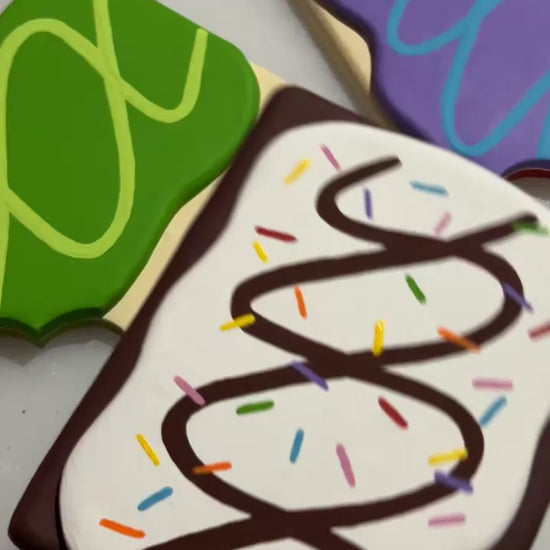 You can choose any flavors you want! If you would like any of your poptarts to have ‘bites’ in them to show the filling you can request that as well.